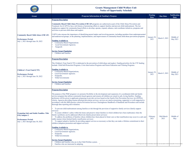 Grant Management Child Welfare Unit