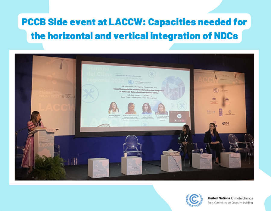 On 19th July 2022, the Paris Committee on Capacity-building (PCCB) hosted a side event at the Latin America and the Caribbean Climate Week on “Capacities needed for the horizontal and vertical integration of NDCs”. Participants learnt about the NDC integration and capacity-building efforts of the Dominican Republic, the NDC Partnerhip’s support in promoting NDC mainstreaming, and the WWF’s assessments of the NDCs in the LAC region. Through the discussions, some capacity needs and gaps identified to scale-up horizontal and vertical integration of NDCs were the need for governments to conduct initial capacity assessments, the need for NDCs to be integrated with finance discussions, and system-wide approaches to NDCs.