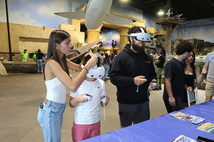 Participants use VR headsets to escape a virtual rip current during a July 2025 event at the Long Island Aquarium in Riverhead, NY. Credit: Jase E. Bernhardt