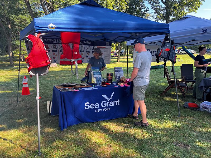 NYSG engaged local and visiting boaters about boating safety and equipment at Paddles Up Niagara in summer 2025. Credit: Megan Cochran/NYSG