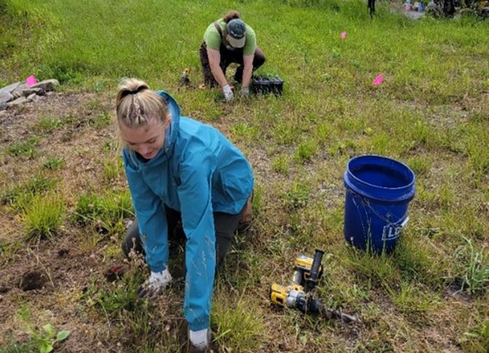 Summer stewards assist with native species plantings for a living shoreline in Western NY. Credit: Buffalo Niagara Riverkeeper