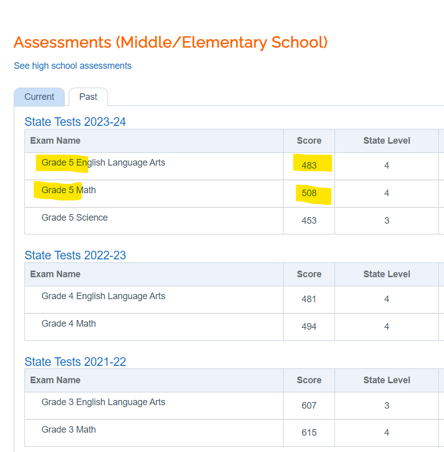 Students who did not take the state exams can still qualify if they took a comparable test measuring ELA and Math skills in the 5th grade. Examples of acceptable tests include: