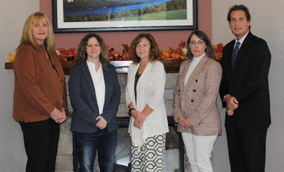 CLMHD Officers Pictured from L-R: Suzanne Lavigne, Second Vice-Chair (Franklin); Lynda Battaglia, Secretary (Genesee); Laura Kelemen, Chair (Niagara); Richelle Gregory, Treasurer (Clinton); Michael Orth, First Vice-Chair (Westchester) | |