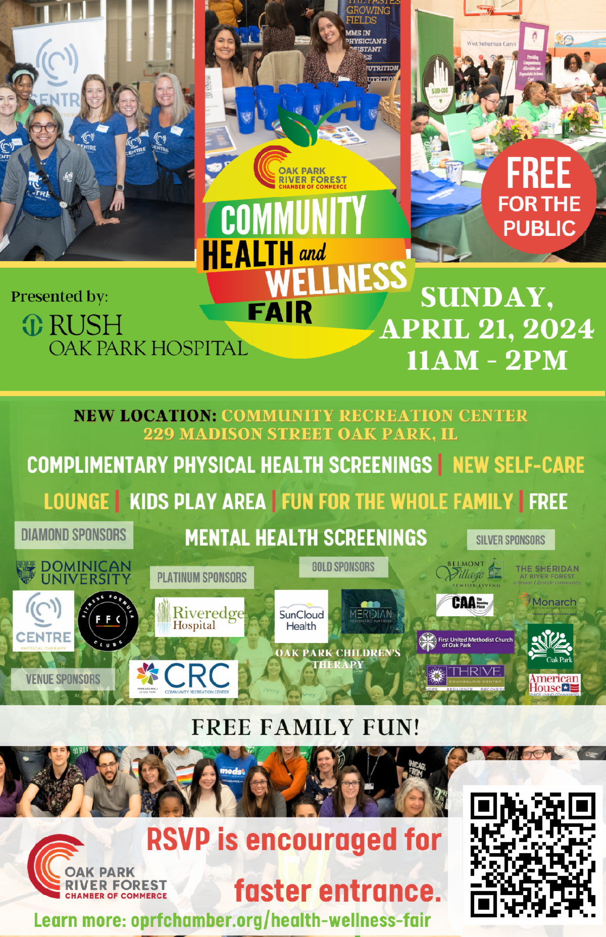 Join the Oak Park River Forest Chamber of Commerce for the 8th annual Community Health and Wellness Fair! Get a free physical and mental health screening, enjoy family activities, and more!