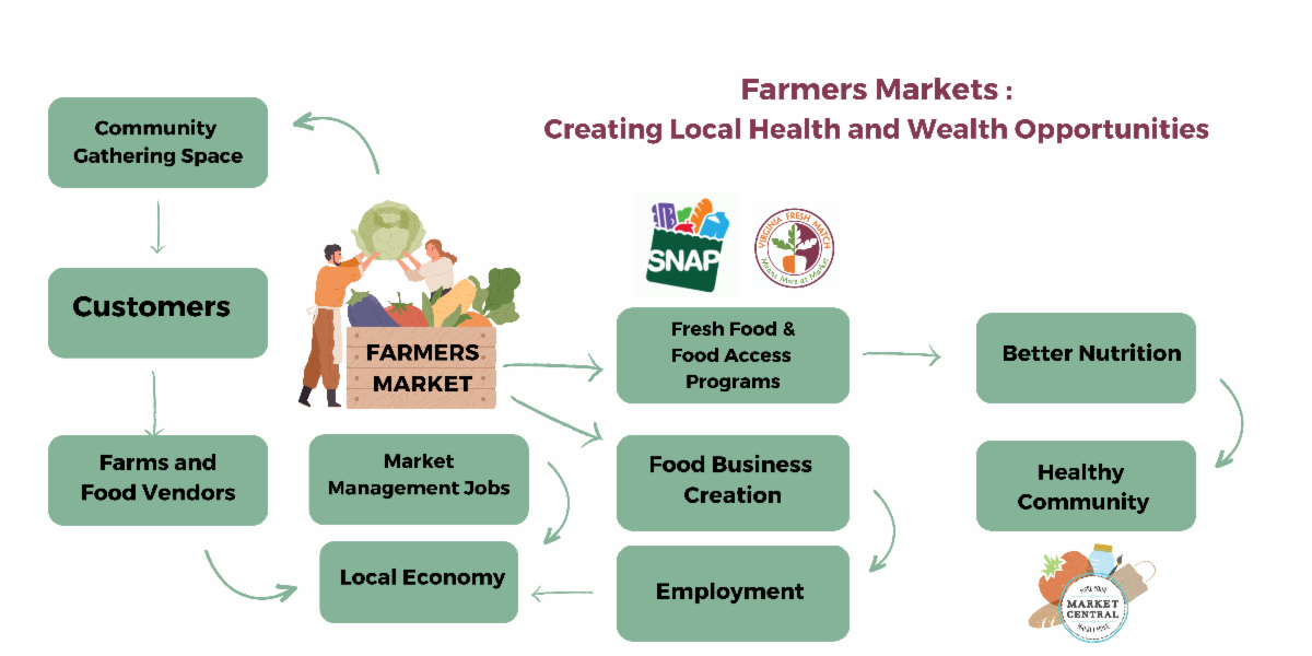 Our market is attuned to the responsibilities to the environment, to equitable access to food and business development, and to the community. Markets are good for communities in so many ways.!