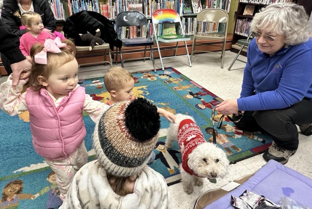 This week, WPL had a visit from Zoe the Therapy Dog and Ethie (Zoe's owner/handler). Based on the number of tail wags, Zoe appeared to enjoy the stories, singing, and extra attention from the kids.