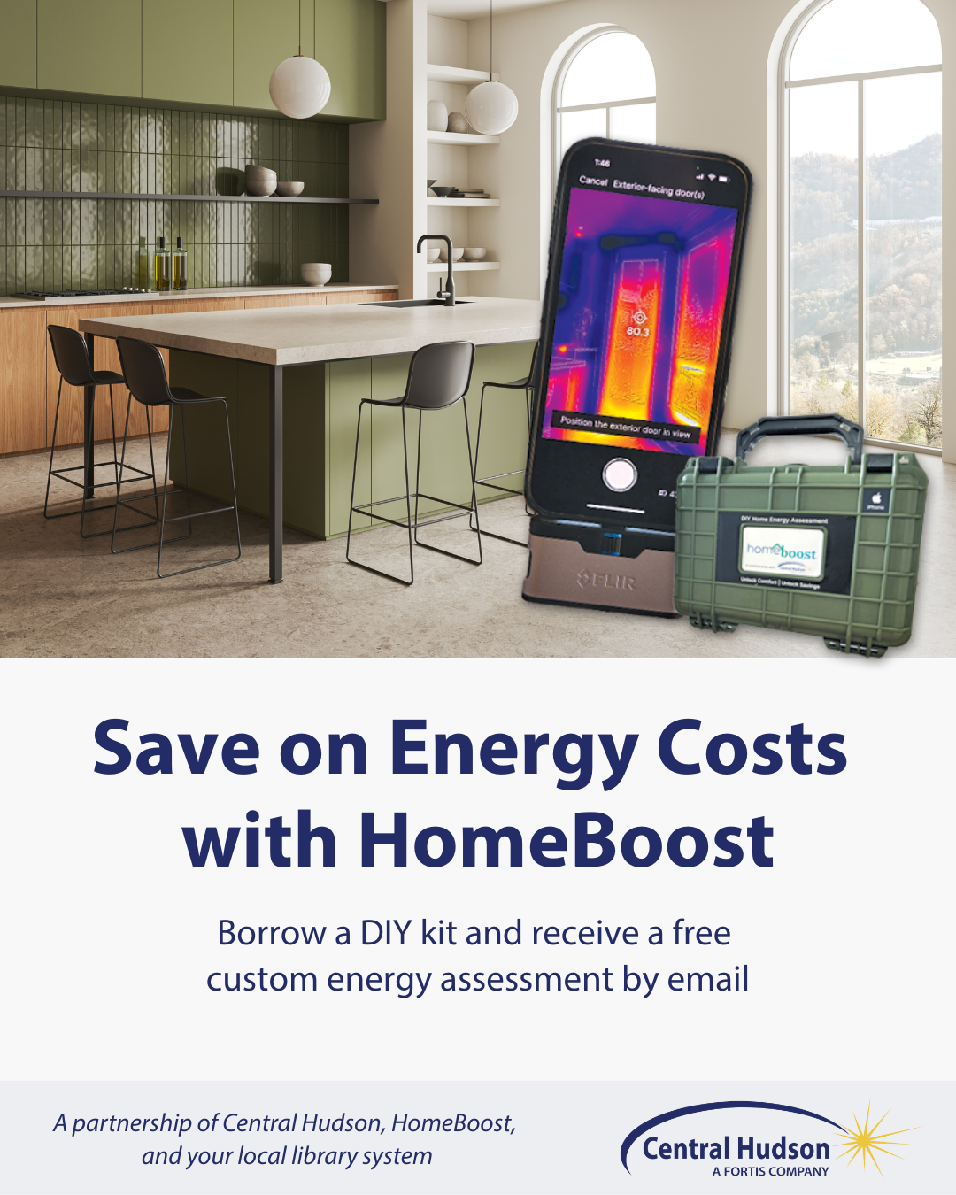 Wallkill Public Library and the Ramapo Catskill Library System have partnered with Central Hudson to make HomeBoost Energy Assessment Kits available to our patrons. The kits include a specialized camera that can be attached to your smartphone to check your home for drafts. It also can scan appliances to check their relative energy efficiency. Along with the cameras, we'll be handing out 25 Weatherization Kits to give to the first 25 people who check out the HomeBoost Cameras. These Weatherization kits include 2 door-sweeps, 2 cans of insulation foam, 1 tube of caulk, and a packet of outlet insulation inserts. Your energy bills aren't getting any lower, so take advantage of these kits to help bring those bills down.