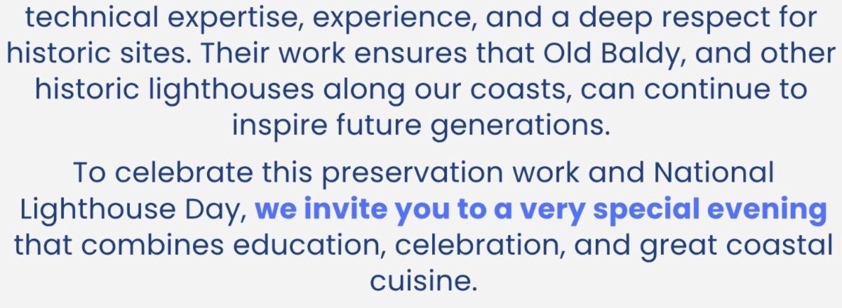 Celebrate National Lighthouse Day with Old Baldy! Hear from our Shrimp Boil speaker, read the Governor’s proclamation, and join the Run for the Light race!