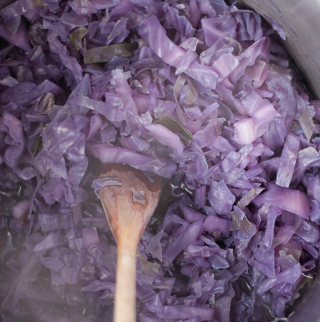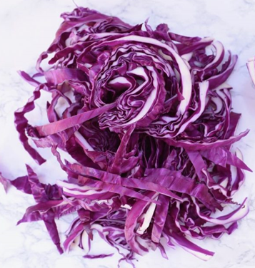 Eggs, being less acidic and more alkaline, change the red cabbage color from red to blue!