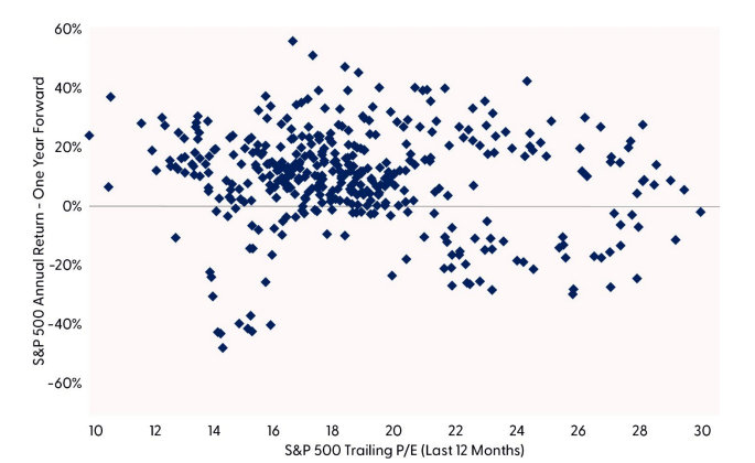 Relationship between S&P 500 price-to-earnings ratio and future one-year performance is weak