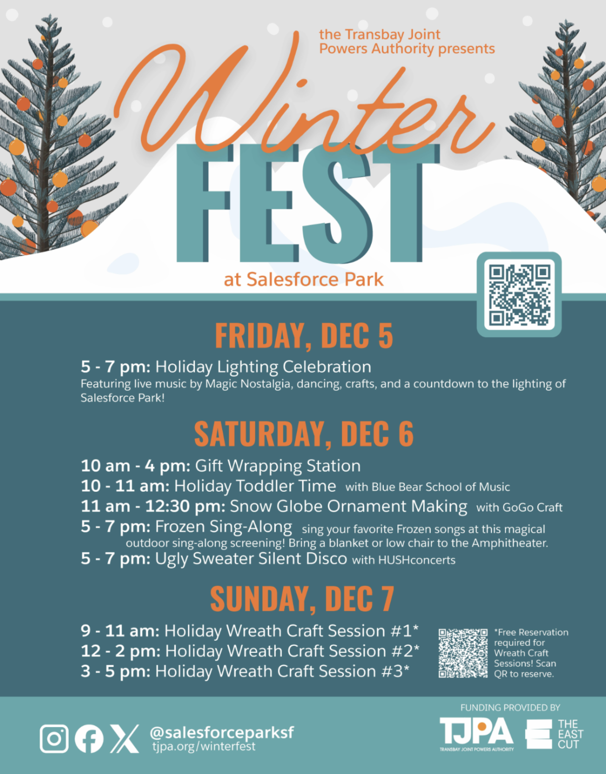The Transbay Joint Powers Authority (TJPA), in coordination with the East Cut Community Benefit District, invites the community to join them for the weekend of December 5th–7th at its sixth annual Winterfest celebration at Salesforce Park.