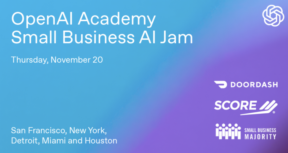 The Renaissance Entrepreneurship Center invites small business owners to the Small Business AI Jam in San Francisco on Thursday, November 20, 2025. In partnership with OpenAI and DoorDash, this free, hands-on workshop helps “Main Street” businesses learn practical ways to use ChatGPT for tasks like marketing, scheduling, customer communication, and bookkeeping. Participants will work directly with OpenAI mentors and community partners to build at least one ready-to-use AI tool tailored to their business.