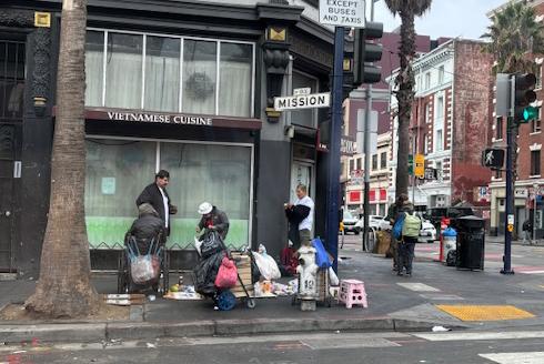 A particular concern is the illegal vending on the southwest corner of Mission and 6th, in front of Miss Saigon restaurant. The vendors appear to resell food obtained for free from food banks—diverting resources meant for those truly in need—and are also selling cigarettes and drugs.