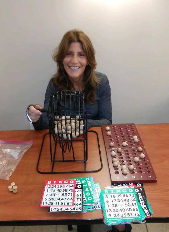 Susan calling bingo at the Residence