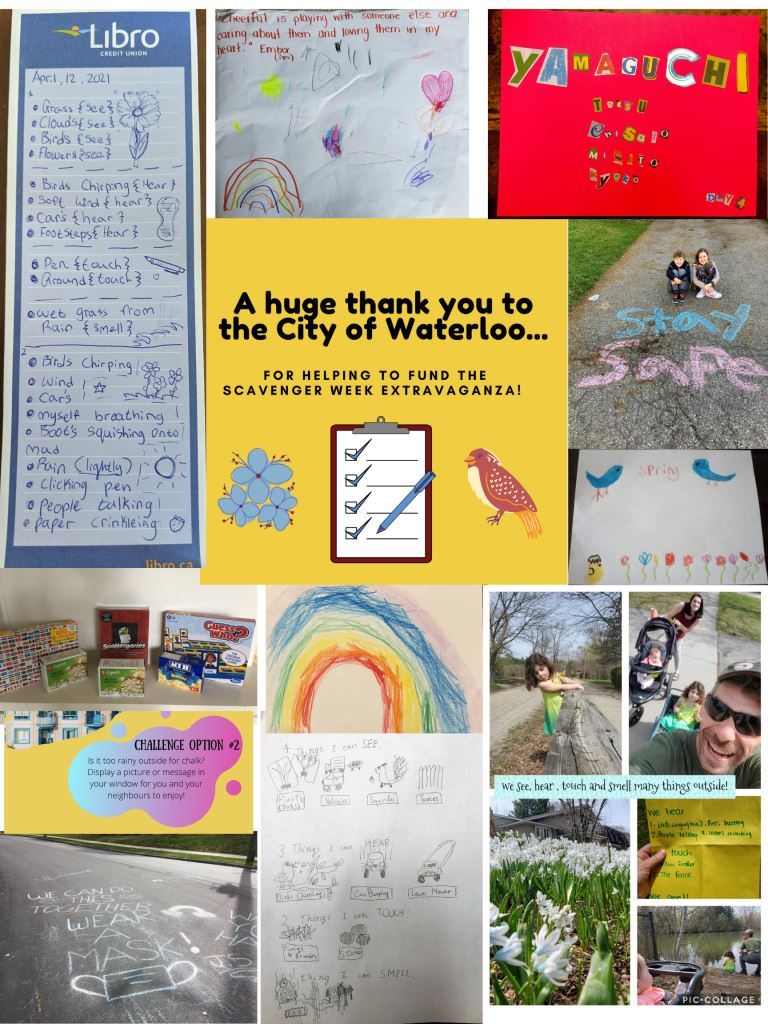 In April, neighbours from Erb West and Beechwood Neighbourhoods organized an area wide, COVID-safe event: Scavenger Week Extravaganza and it was a great success! There were lots of smiles, amazing discoveries, fun dances, beautiful artwork and kind words. All at a distance!