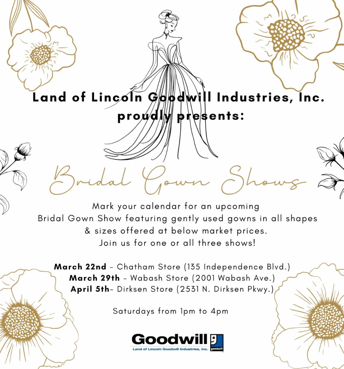 Land of Lincoln Goodwill Industries is thrilled to announce three upcoming Bridal Gown Shows, offering an incredible selection of nearly 200 new and gently used wedding dresses in various styles and sizes—all at unbeatable prices.