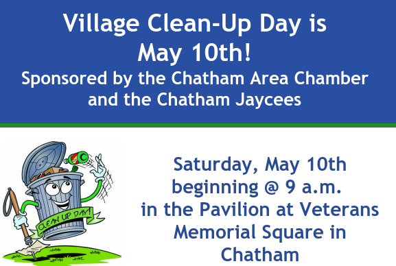 Village Clean-Up Day, 9-11 a.m., Veterans Memorial Square in Chatham