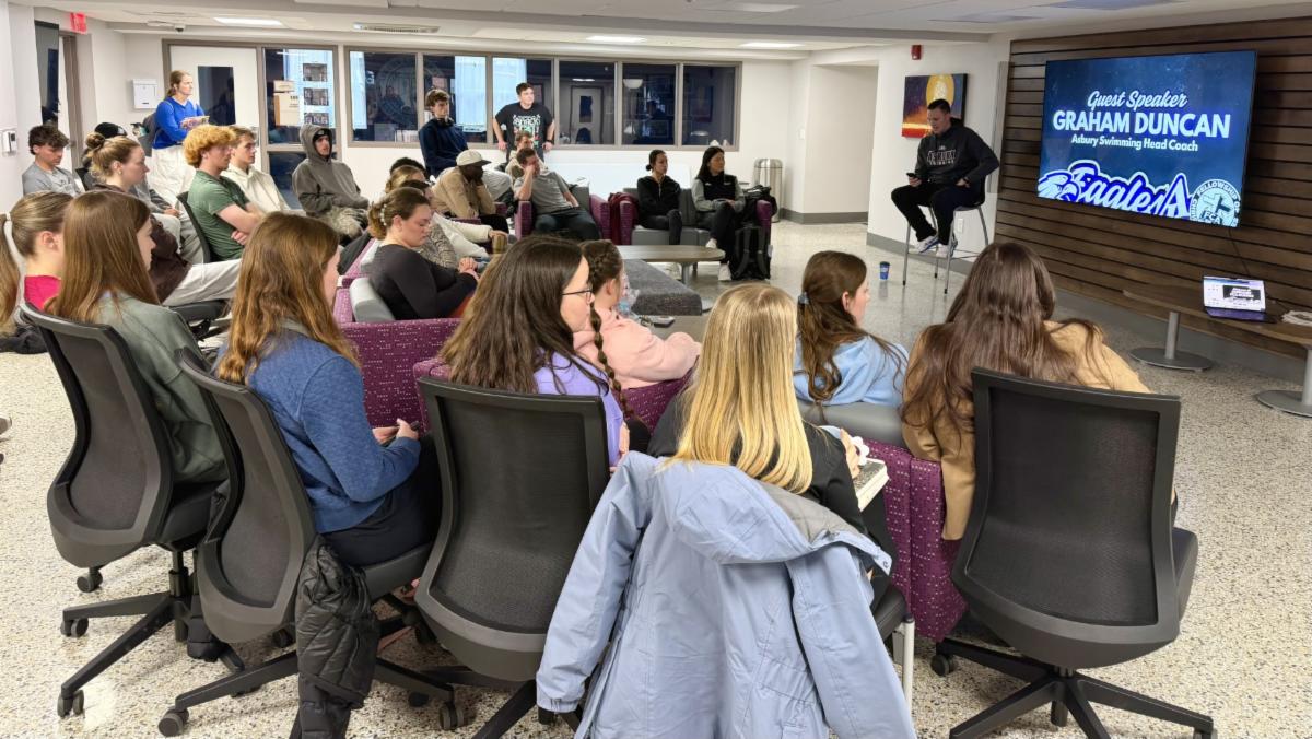 Staff member Victoria "Froggy" joined our team in the fall and covers two college campuses in Central Kentucky, one of which is Asbury University. Since she began working with FCA, she has been investing effort in reestablishing organization presence on this campus first and foremost by forming a leadership team. Through collaboration with these athletes, she has been working hard to structure Huddle meeting patterns. Trying different strategies, this semester they are gathering monthly for Huddles, and seen here is their February event. During this gathering they were able to hand out Asbury FCA apparel and students learned about East Africa mission trip opportunities through the ministry, played games, and heard from guest speaker Graham Duncan (head swim coach). Growth at this school has