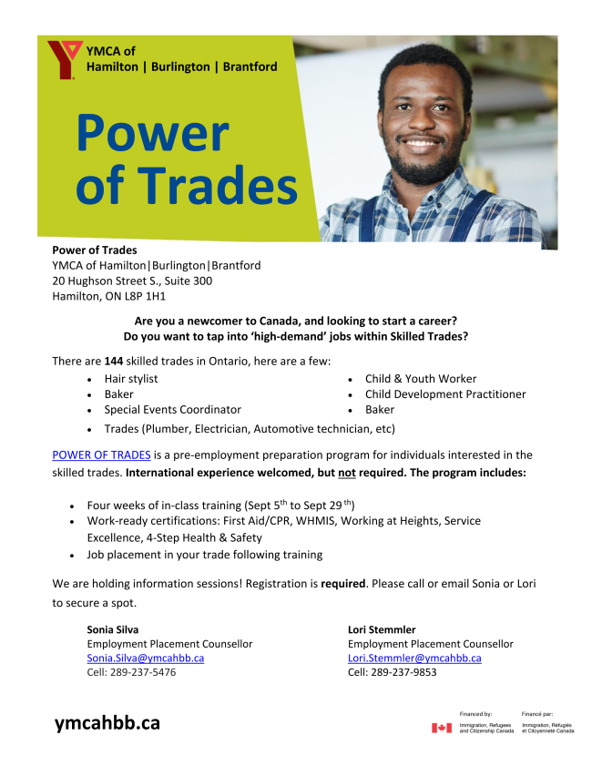 The YMCA HBB is excited to be actively conducting intakes for our next training session for the POWER of TRADES program.