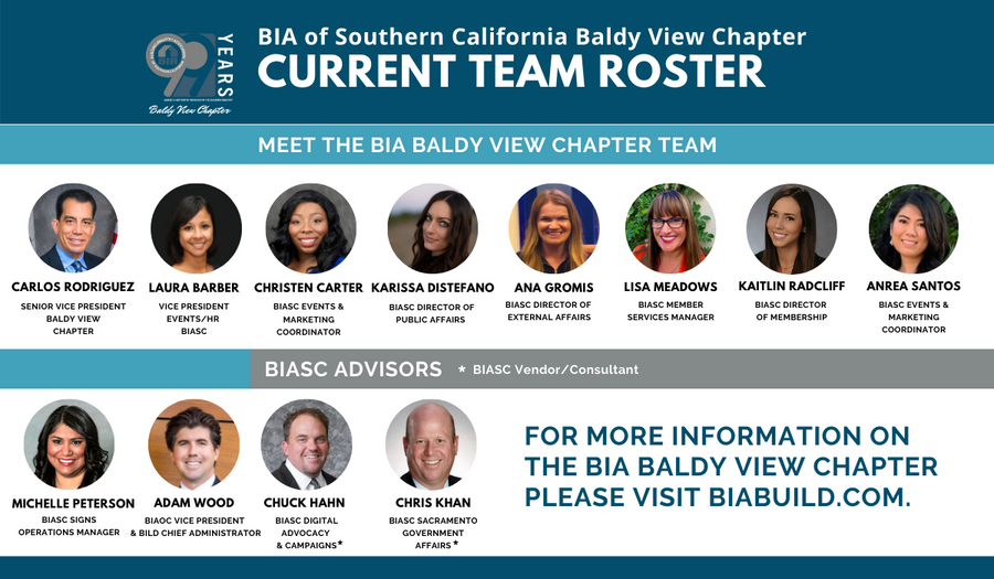 For any questions regarding the BIA Baldy View Chapter, please contact Senior Vice President Carlos Rodriguez at carlos@biabuild.com.