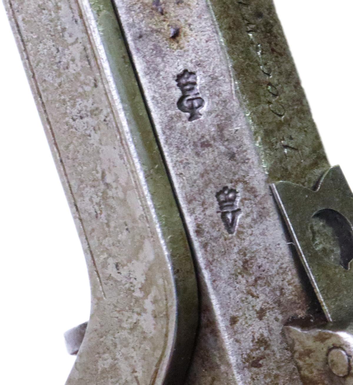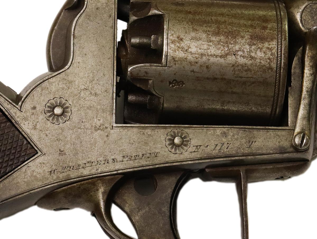 Collectors call this pistol the Figure Eight because the double trigger ring forms the number 8. The lower part of the ring rotates the cylinder and cocks the hammer while the trigger itself rests inside the top loop of the eight.
