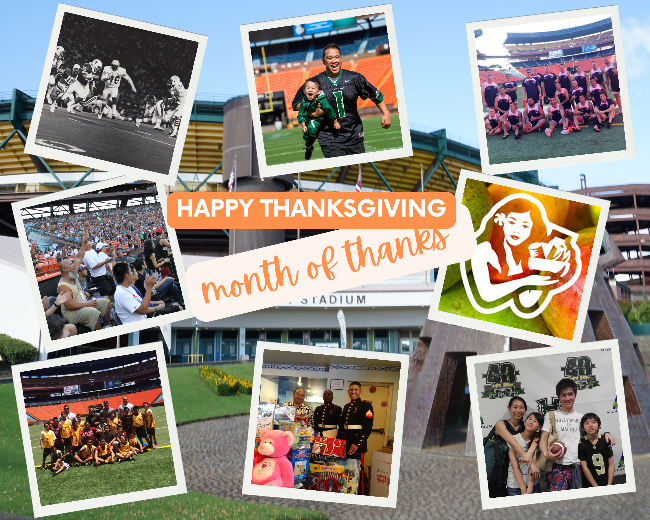 This Thanksgiving, we give thanks for the countless moments shared with friends and family at Hawai‘i’s largest gathering place. From unforgettable football games and community food drives to simple, quality time spent together, Aloha Stadium has been the backdrop for memories that have brought our island ‘ohana closer throughout the years. As we celebrate the season of gratitude, we honor the traditions, laughter, and connections that have filled our stands.