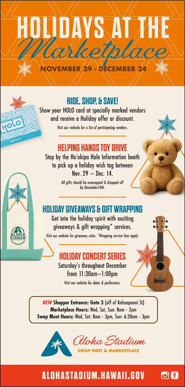 Come visit the new location and support Hawai‘i’s local vendors — same Aloha Spirit, brand new setting! Be sure to follow us on Instagram @alohastadiumhi for updates and ongoing activities.