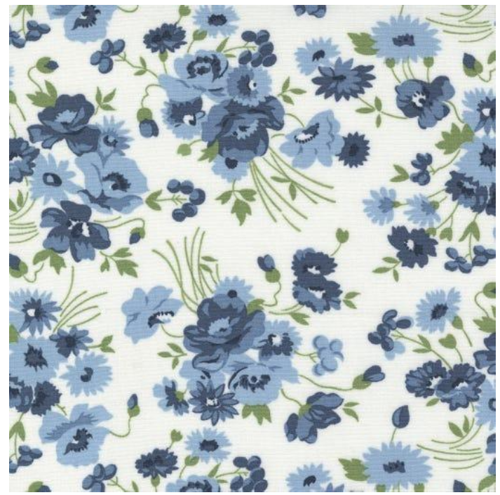 Precut 10” squares, 5” squares and 2.5” strips, all in 42 piece packages, give you the full array of prints in dark, medium and light blues and creams.