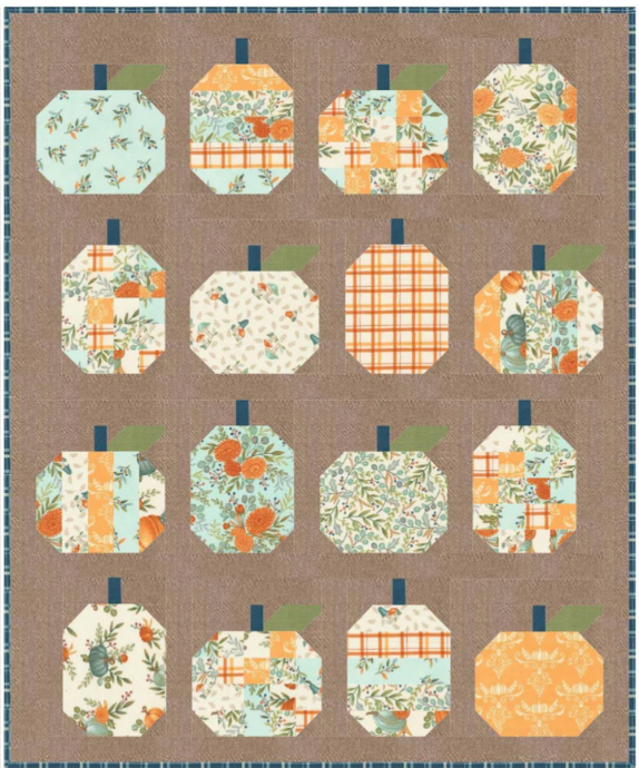 Create a harvest of adorable pieced pumpkins with this Mini Pumpkins pattern. The mini quilt finishes at 23.5in x 29in, the perfect size for a wall hanging or table topper! Or
