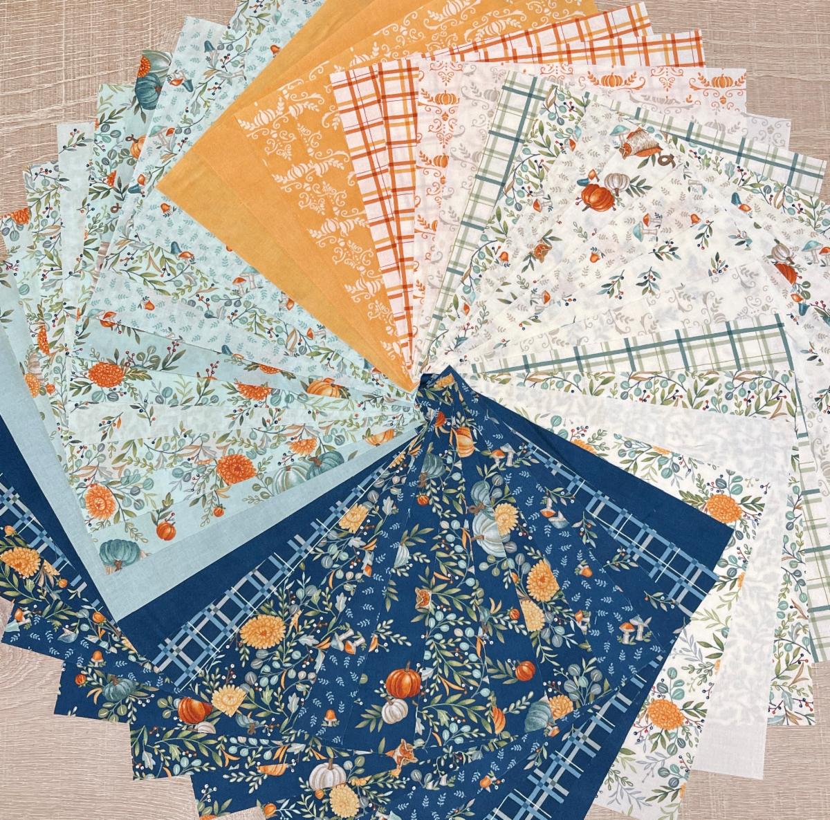 The 25-piece collection captures hues in soft warm pumpkin oranges, muted aquas and a deep rich "Harvest Night Sky" blue. Delightful designs feature autumn pumpkins, mums and beautiful foliage.