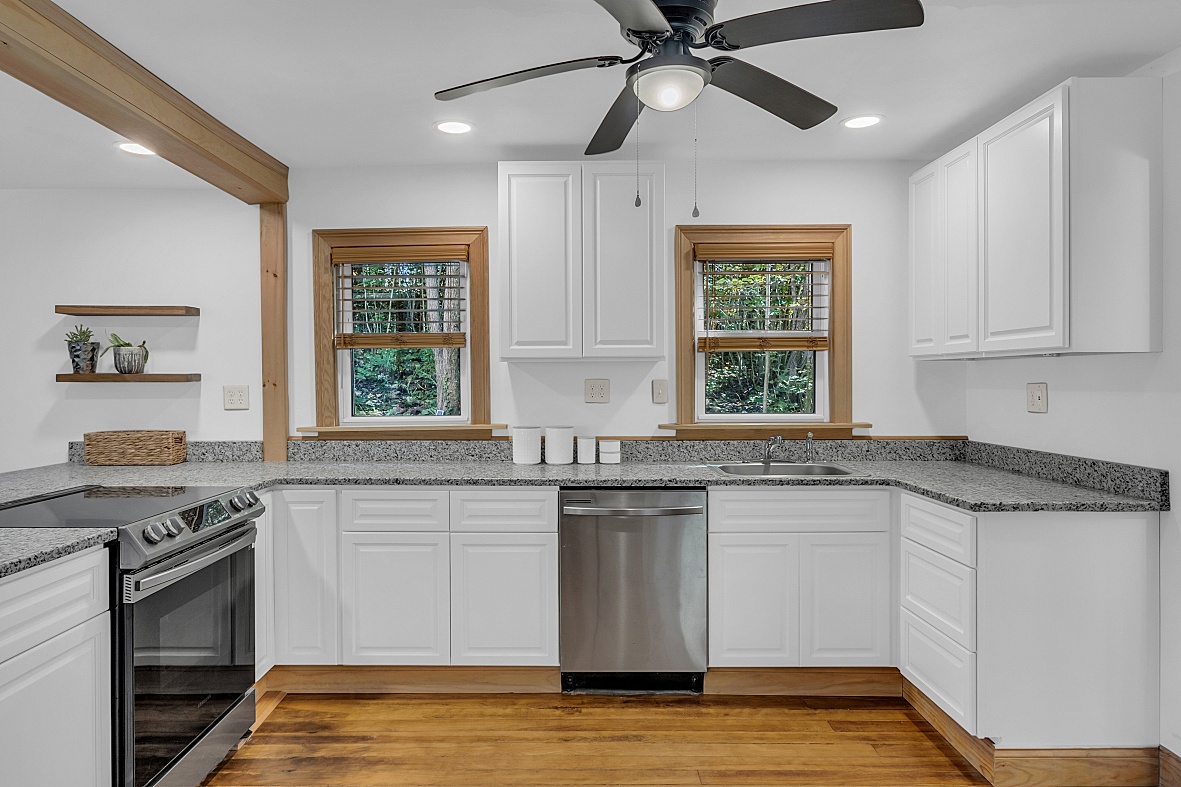 The permitted renovation also includes a new kitchen with white cabinets, granite countertops and brand new stainless appliances. New bathroom/laundry with tile flooring and brand new washer/dryer.