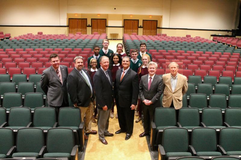 | B&P Staff and Students with FIF Board Members outside the Anthony F. Frederico Class of '69 Auditorium |
