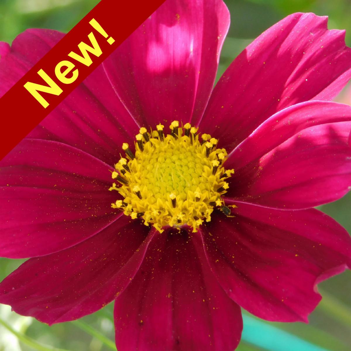 Cosmos bipinnatus. The Sensation series is a must in cutting gardens. Dazzler Sensation's 3"-wide blooms are deep, rosy red from center to tip, with a golden center. Annual. Height: 3' to 5'.