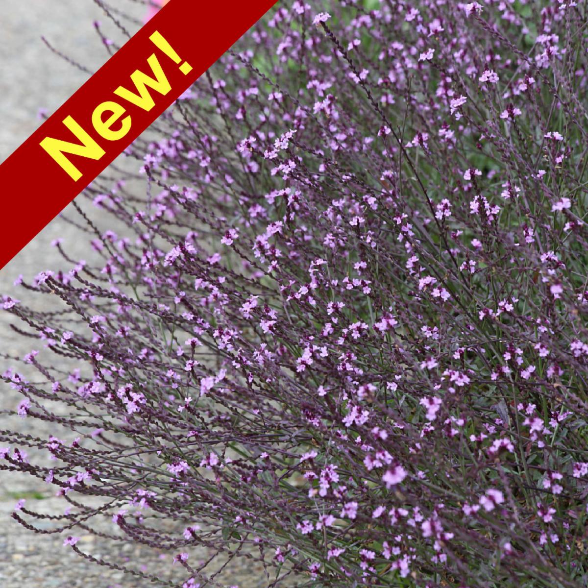 Verbena officinalis var. grandiflora. This unusual Verbena's loose tangle of burgundy stems and purple-green foliage is adorned with tiny lavender-pink flowers. It's wonderful as a filler. Tender perennial. Height: 2' to 3'.