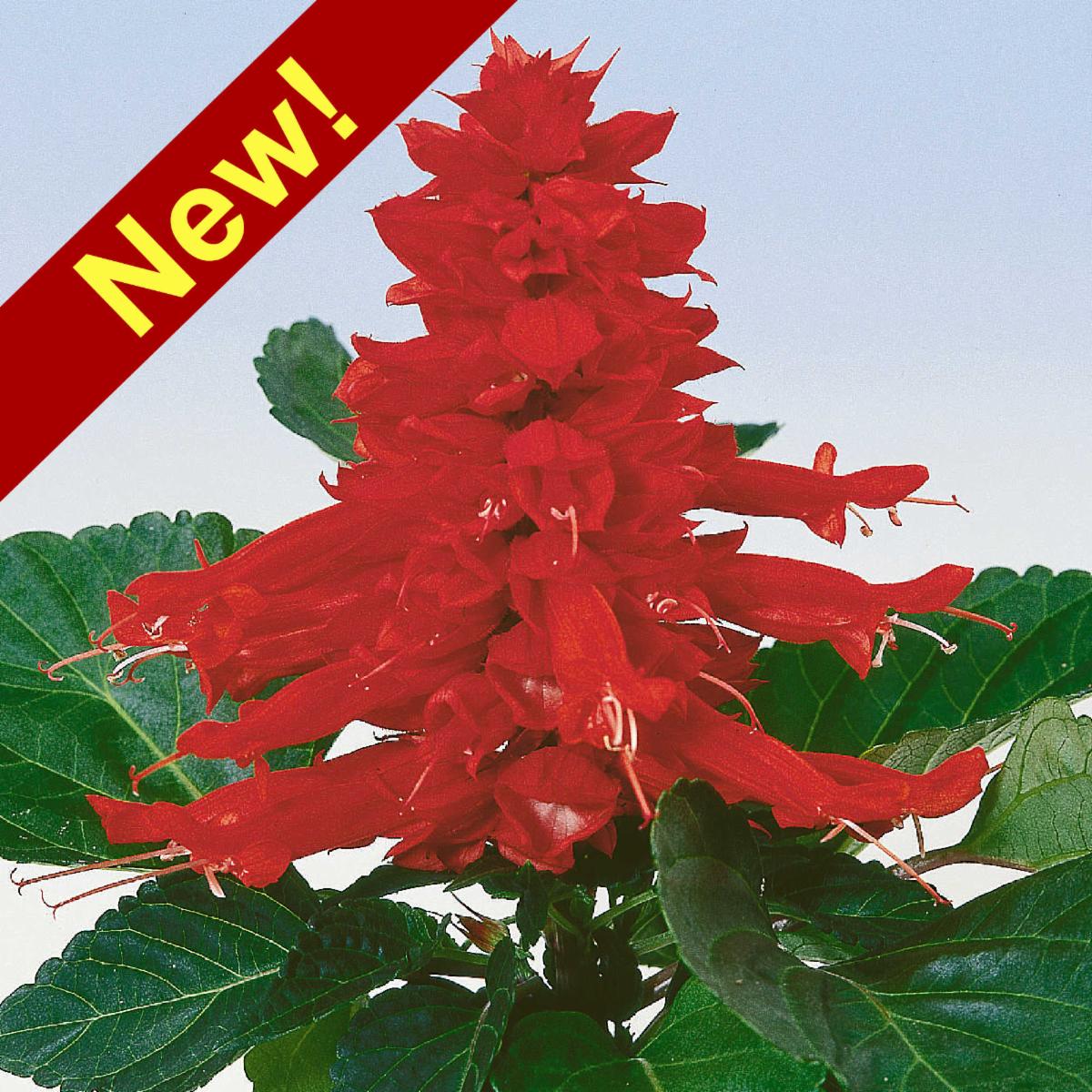 Salvia splendens. Part of the improved Amore Series of bedding Salvias, Amore Scarlet is a classic shade of deep, vivid scarlet. Annual. Height: 4' to 5'.