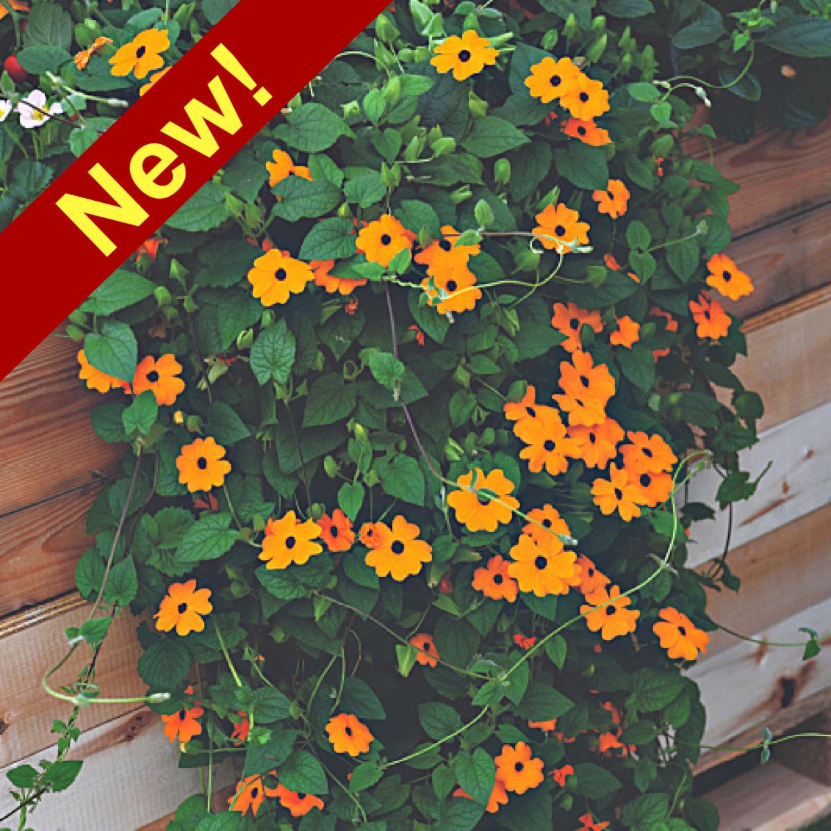 Thunbergia alata. An easy to grow annual, this Black-Eyed Susan Vine is a sun-loving climber with vivid, bright orange blooms with dark eyes. It craves the support of a trellis, lattice or netting for its vigorous vines. Annual. Height: 4' to 5'.