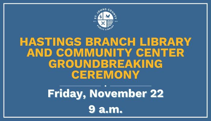 We’re thrilled to announce that the groundbreaking ceremony for the future Hastings Branch Library and Community Center will occur at 9 a.m. on Friday, Nov. 22, in the lot where the new location will be constructed. This momentous occasion marks a new chapter for SJCPLS and the Hastings community.
