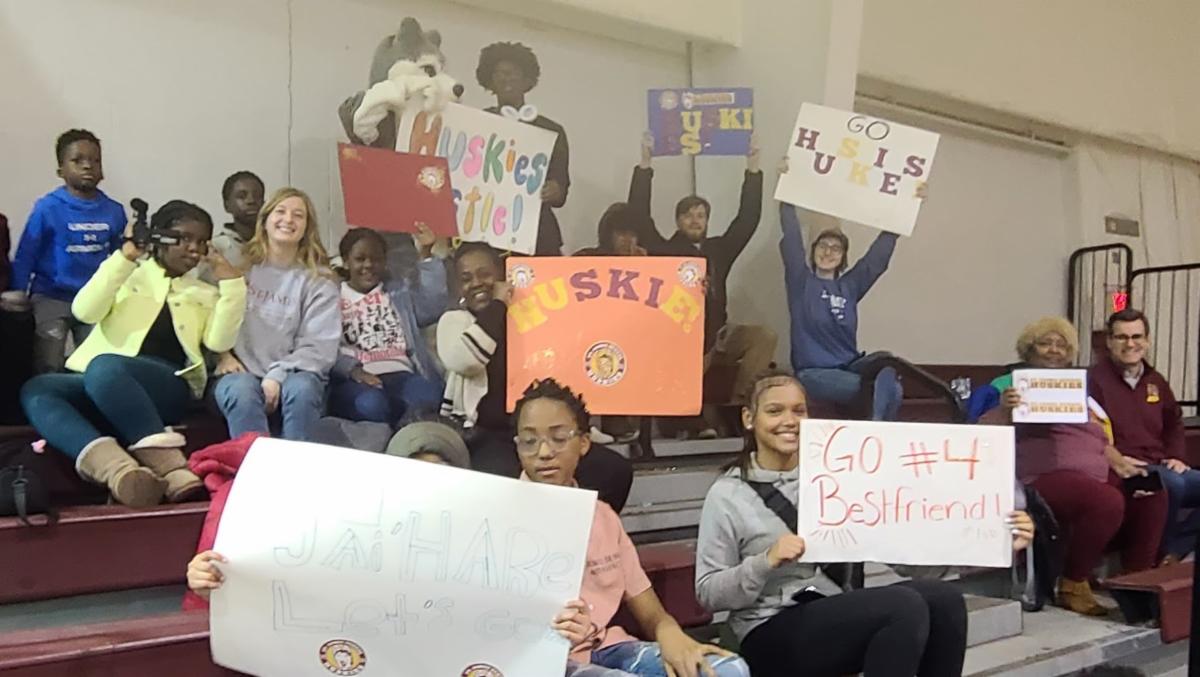 Students participating on teams in a Black History Month trivia contest using Kahoot, a game-based learning platform