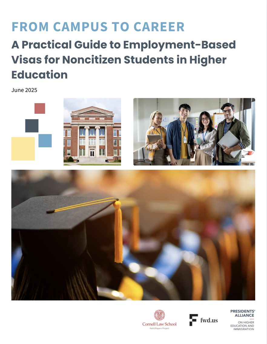 Developed in partnership with FWD.us and Path2Papers, our new guide offers practical advice for students and higher education professionals navigating nonimmigrant and immigrant employment-based visa options after graduation. It provides clear guidance on what students can do during their academic journeys to strengthen their eligibility upon entering the workforce.