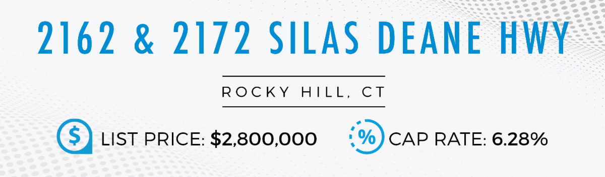 THE ASSET: 2162 & 2172 Silas Deane Highway consists of two buildings, constructed in 2000 and 1978, and contains a total of 13,593 square feet of space on a 1.46-acre parcel of land. The Property features six (6) commercial suites and is 100% occupied. The rent roll contains an attractive mix of retailers and service-oriented businesses, including Elements Personal Training, Kettle Bagels, Cutters Edge Salon, MyEyeDr, Euro Grocery and Annie’s Pet Spa. All of the leases call for attractive annual rental increases throughout the base terms, providing a steady increase in income and an attractive hedge against inflation. Most of the leases also feature a number of 5-year options.