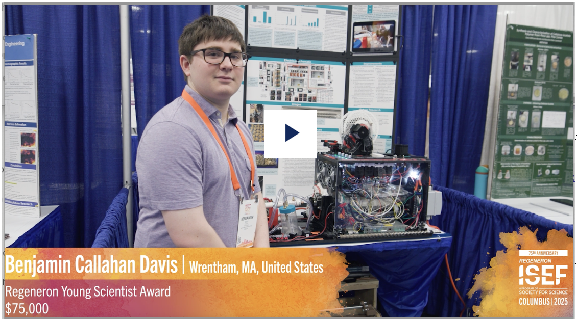 We’re thrilled to share that Massachusetts’ own Benjamin Davis has won the Young Scientist Grand Prize at the 2025 Regeneron International Science and Engineering Fair (ISEF)—the world’s largest pre-college science and engineering competition!