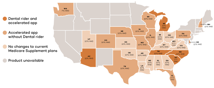 As of Sept. 1, 2024, new Medicare Supplement insurance plans are available in Arizona, Michigan, North Carolina, South Carolina, and Tennessee. Clients in these states can choose to add our innovative Dental rider to their policy.