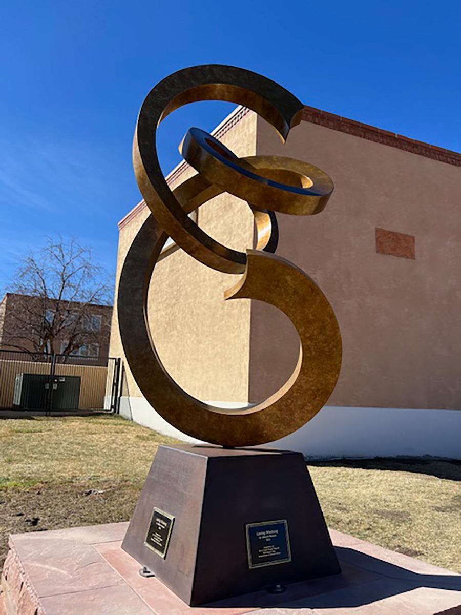 Winterowd Fine Art gallery artist Gilberto Romero recently installed his sculpture Lasting Windsong on the corner of Don Gaspar and West de Vargas which was purchased through the State’s Art in Public Places (AIPP) program. Showcasing his quintessential style—a mix of soft lines, shapes, and formal artistic elements to convey movement and the harmony of the natural world—it is made from welding long, flat sheets of bronze, a process that requires precise technique and skill in order to achieve the clean, fluid and continuous lines.