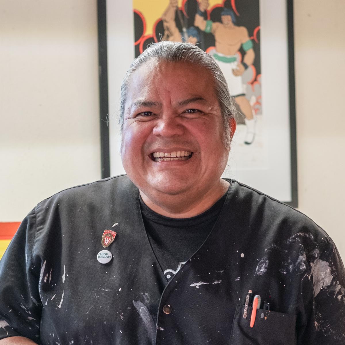 Jason Garcia’s (Okuu Pín/‘Turtle Mountain’) work documents the ever-changing cultural landscape of his home of K’haPo Owingeh/Santa Clara Pueblo, NM. Garcia’s Tewa cultural ceremonies, traditions, and stories, as well as 21st century popular culture, comic books, and technology, influences his clay and print work. Using traditional materials and traditional Pueblo pottery techniques coupled with various printmaking techniques, this juxtaposition of customary and contemporary materials and techniques connect him to his Ancestral past, landscape, and cultural knowledge.