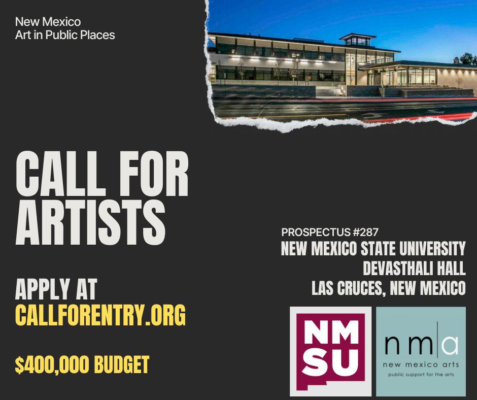 The Art in Public Places Program of New Mexico Arts and the Local Selection Committee (LSC) of New Mexico State University (NMSU) seek to commission an artist/artist team to create and install site-specific artwork for one of two designated exterior installation areas at Devasthali Hall on NMSU’s campus in Las Cruces, New Mexico. Seeking a statement artwork that screams ART! – Contemporary/Experimental/non-traditional, expressions of the cultural identity of the Borderplex region, interpretations of place, capture the spirit of the community, and/or the interdisciplinary & intercultural exploration brimming within these walls. A head-turning artwork that draws people from across the campus and community to celebrate and join the heritage and history of iconic artists with ties to NMSU and the area such as Jaune Quick-to-See Smith, Wendy Red Star, Sol LeWitt, and others. Looking for a landmark artwork to draw visitors to the Art Museum and Art Department at Devasthali Hall; vibrant, awe-inspiring, a beacon for those seeking deep exploration and discourse in various platforms of artistic engagement. Audience of this space includes students, faculty, visitors, and the greater community.