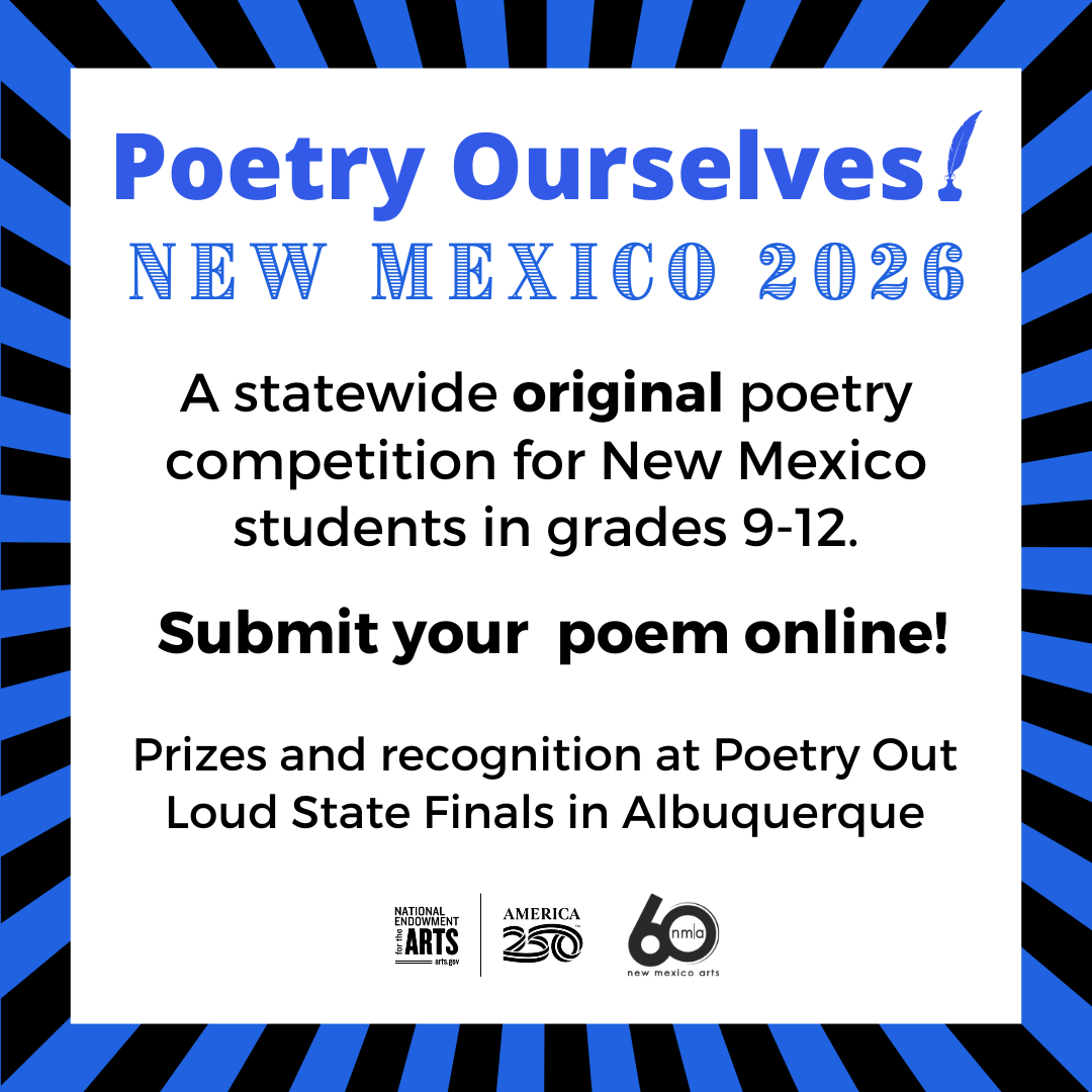 ANNOUNCING! > 2026 Poetry Ourselves New Mexico is a statewide original poetry competition for students in grades 9-12. This is a free opportunity for students to share their written poetry.