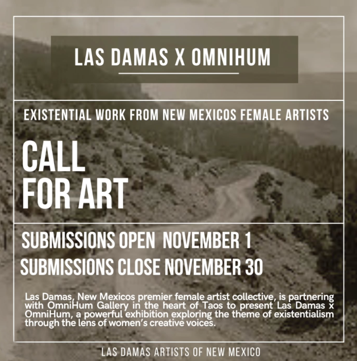 Las Damas, New Mexicos premier female artist collective, is partnering with OmniHum Gallery in the heart of Taos to present Las Damas x OmniHum, a powerful exhibition exploring the theme of existentialism through the lens of women’s creative voices.