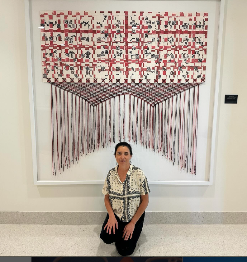 | A Skirt for Coatlicue pictured with Moira Garcia is permanently installed at the new UNM Hospital Critical Care Tower in Albuquerque. |