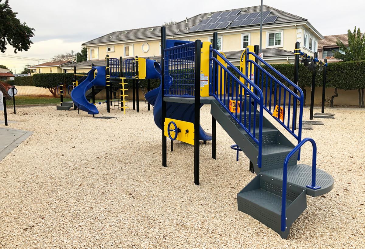 Located adjacent to Roosevelt Elementary School, this new playground was built with the generous support of Blue Shield of California and KABOOM!. The previous playground at this neighborhood park was built over 20 years ago as a pocket park that was in need of replacement.