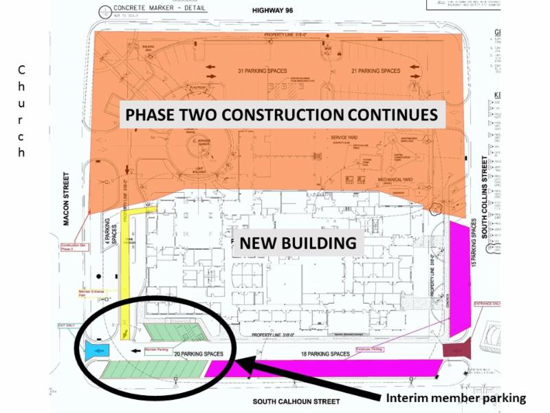 Phase one on the construction of the new Reynolds Headquarters is complete. Employees are moving out of the old building located directly on GA Hwy 96 at 5 pm on Friday, Aug. 7. Beginning on Tuesday, Aug. 11 at 12 noon, members will need to use a temporary entrance to the new building by parking off of Calhoun Street and entering the Macon Street side. (See Interim Member Parking)